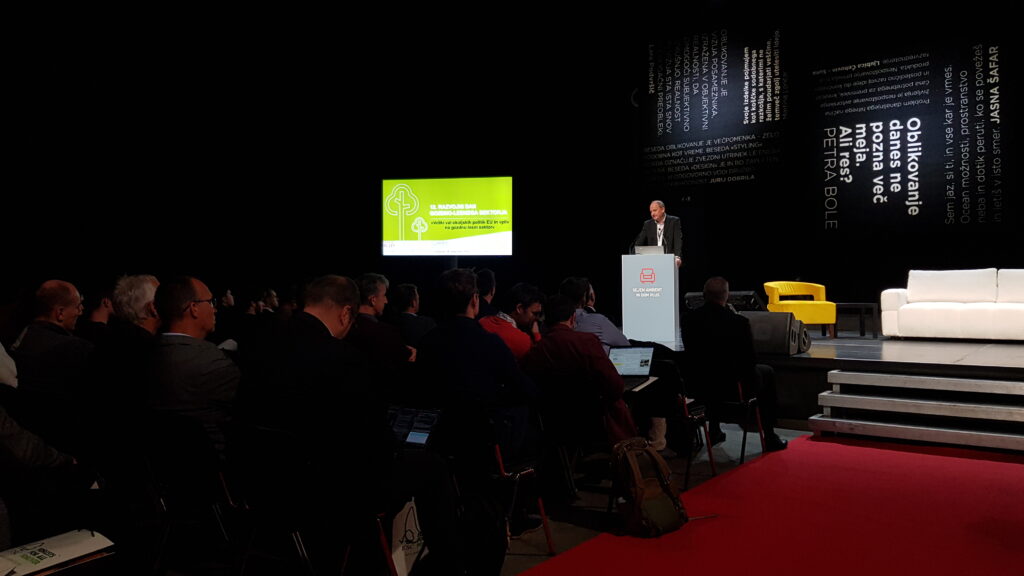 On Thursday, November 14, 2024, the 12th Development Day of the Slovenian Forest-based Sector was held as part of the Ambient and Dom plus fair, organized by SPIRIT Slovenia in cooperation with the Ministry of Economy, Tourism and Sport together with the Chamber of Commerce and Industry of Slovenia, the Wood Industry Cluster, UL Faculty of Biotechnology, the Forestry Institute of Slovenia and the Association of woodworkers of Slovenia. This year’s Development Day of the forest and timber sector was focused on the very current topic of EU environmental policies and their impact on the operations and development of wood and furniture companies.