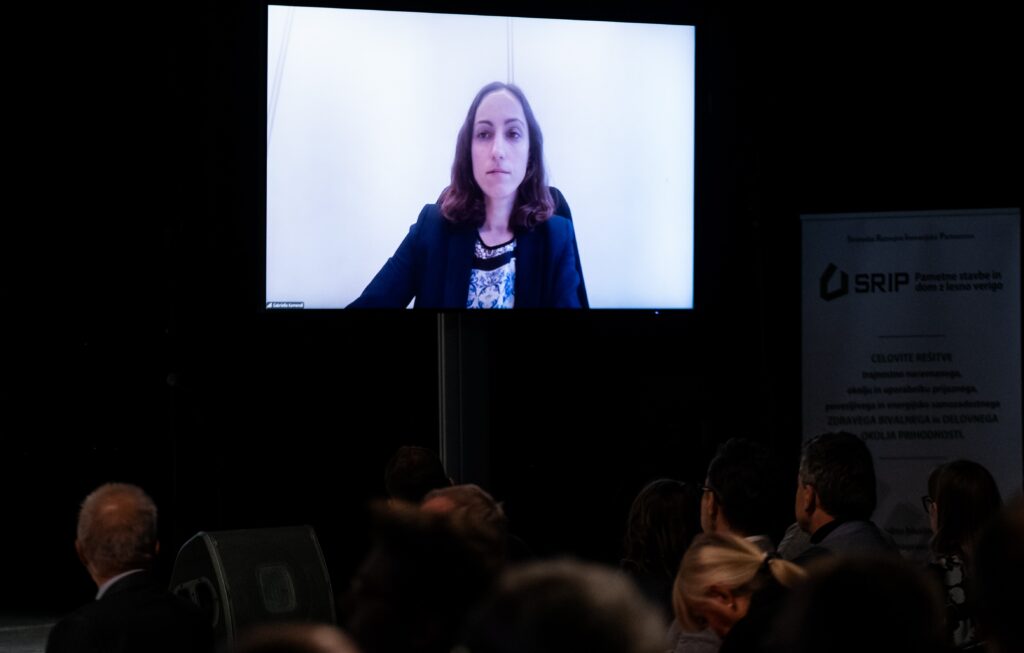 The second part of the event was dedicated to the presentation of good practices and projects regarding wooden construction and the green transition. Dr. Boštjan Lesar from UL Biotechnical Faculty presented guidelines for quality wooden construction, Mojca Pintar from M Sora d.d. spoke about the experience with sustainable reporting and carbon footprint, Matic Navotnik from TAB d.d. and about the introduction of the product’s digital passport. Zlatka Poličar from A1 Slovenia focused on their example of good circularity practices, and Janja Ribič from the Directorate of Wood Industry at the Ministry of Economic, Tourism and Sport on the effectiveness of green public procurement of wood products.
