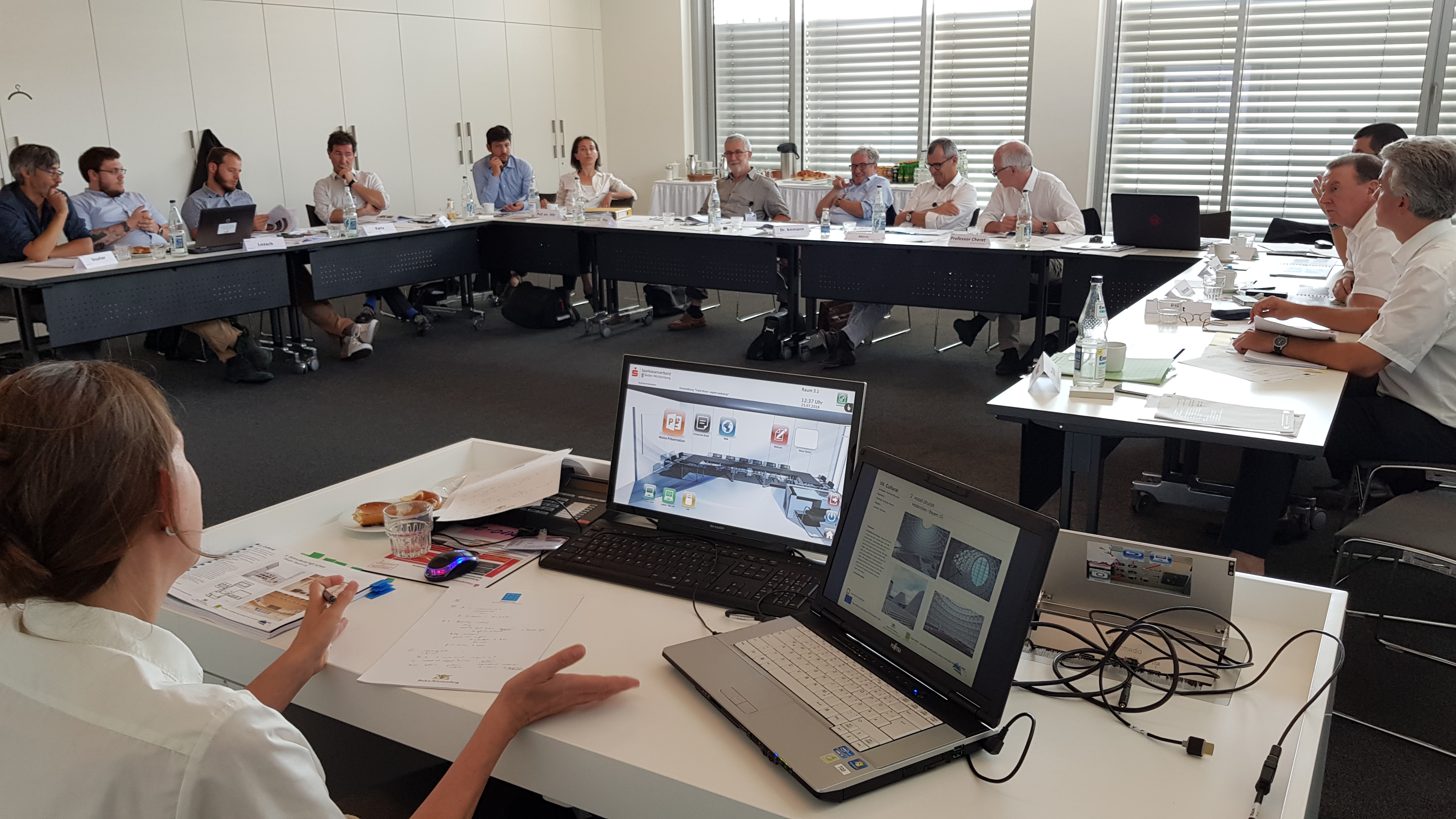 On July 25, 2018 an international workshop was held in Stuttgart with established experts and architects on wooden construction in the countries of the Alpine macro region; Germany, Austria, Italy, France, Switzerland, Liechtenstein and Slovenia. At the workshop, they selected a timber construction projects, which will form the basis for an international road show exhibition in the following year.