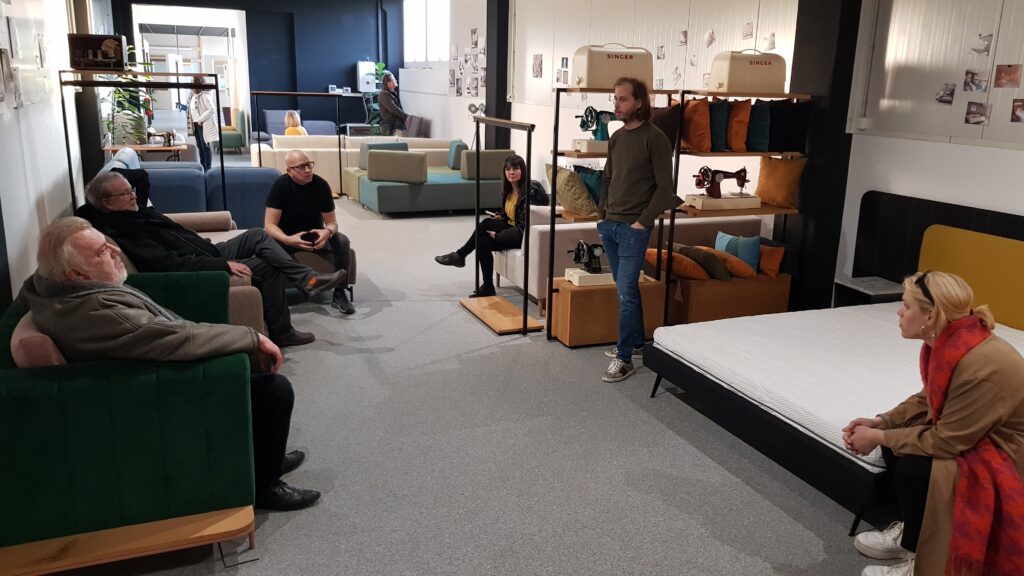 We continue to connect industrial designers with wood and furniture companies! This time with a visit by designers from the Slovenian Designers Association and the Faculty of Design to furniture companies from northeastern Slovenia at an open house at Murales, Atrium Novi interieri and Tapetnišvo F Modern.